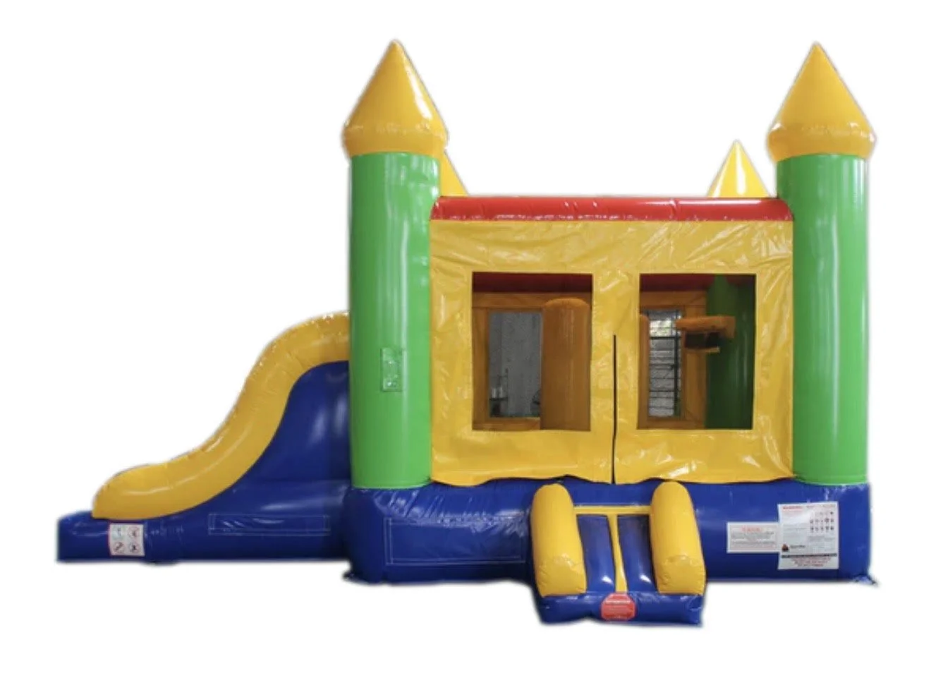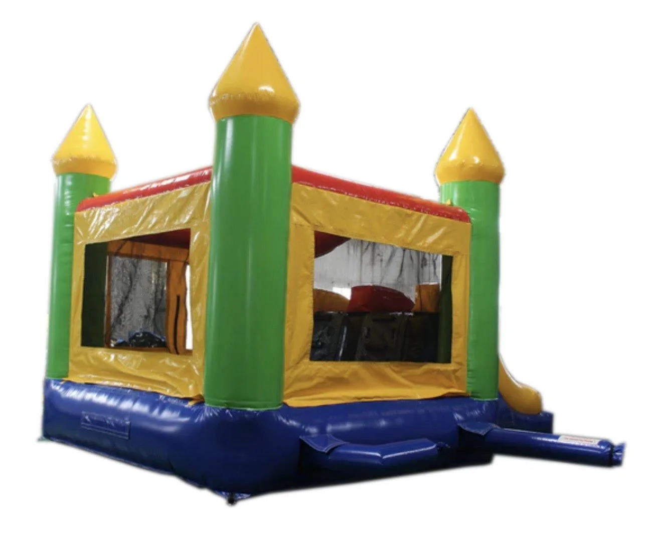 Blue bounce castle doesn’t have a slide but is still fun for younger kids! This bounce house is 15’Wx15’Lx15’H. This is a dry unit only. Our current rate for 4 hours is $180 +tax or make it a 4-8hr day for just $50 more.